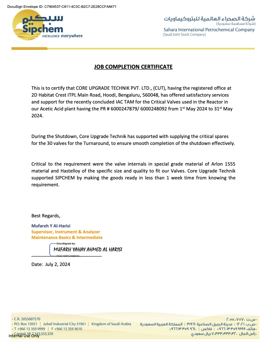Standards Certified: ASTM, API, ANSI, IEC, NACE, JIS, EN